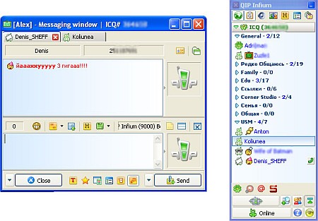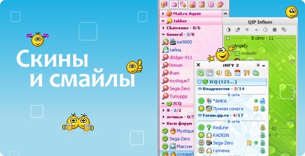 %} Сегодня QIP поддерживает протоколы OSCAR (ICQ), XMPP (Jabber), Gtalk, LiveJournal, Mail.Ru Agent, IRC и XIMSS (SIP), Twitter, Facebook, Vkontakte. QIP сделает общение удобным и приятным. Много новых смайлов, ав
