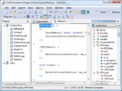 Текстовый редактор для программистов, веб-дизайнеров и обычных пользователей с очень большими возможностями: настраиваемый тулбар, отдельная панель макросов (в качестве макросов могут выступать также JavaScript и VBScript), запись движений мыши и клавиатурного набора, открытие файлов даже не большого, а огромного размера, работа сразу с несколькими файами, подсветка синтаксиса ASP, C#, C++, CSS, HTML, Java, JavaScript, JSP, Pascal (Delphi), Perl, Python, PHP, SQL, VBScript и д