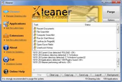Весьма неплохая программа для очистки вашей системы от накопившегося мусора (временные файлы и т.д.). Также защищает вашу конфиденциальность в интернете. Удаляет все следы, которые вы оставили в интернете, все временные файлы, кэш, историю интернета и многое другое. Xleaner is software to clean your PC and what cleanup options relates to the one at the same time very powerful. Xleaner offers of settlement of all current Windows, browser and office tracks, many oth