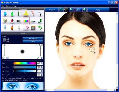 Волшебный "лёгкий" редактор для обработки портретов цифровых фотографий. От Очистителя Кожи до придания ему Гламурного Вида "глянцевых журналов", попутно включая инструменты для: ретуширования, удаления красных глаз, сглаживания морщин, увеличения чёткости, коррекции цвета и многого чего еще, для приданию портрету совершенного вида и желаемой привлекательности. PhotoInstrument is a powerful and easy-to-learn raster graphics editor used to process digital photographs. With only a few clicks, anyone can solve most digital photo problems: Photo Editing; Photo Retouch; Draw MakeUp. Make your photo looks like i