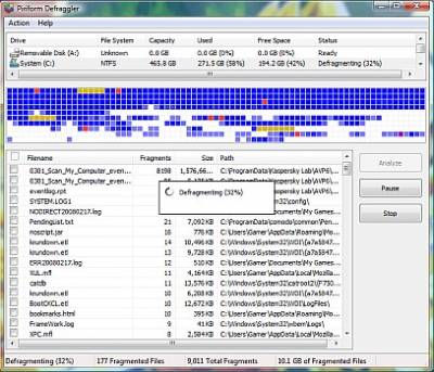 Дефрагментатор от компании Piriform Ltd. Умеет работать как с целым диском, так и с отдельными папками и файлами. В отличие от аналогичных программ, Defraggler обладает полезной возможностью быстро и просто дефрагментировать только выбранные файлы, а не обрабатывать весь диск целиком. После запуска и анализа жесткого диска Defraggler отобразит список всех фрагментированных файлов. Достаточно выбрать интересующие файлы и вы увидите их расположение на диске, а Defraggler за неск