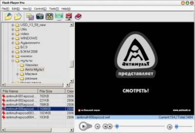 Программа предназначена для просмотра swf-файлов (flash-роликов). Полоса прокрутки в виде синей полоски, поддержка Win-тем, асоциация swf-файлов с программой, stop-play по нажатии на выбранную кнопку в настройках, дружественный интерфейс. C Flash Player Pro вы можете: Загрузить flash ролики из сети Интернет, Смотреть и проигрывать ролики Macromedia flash во весь экран с помощью встроенного плеера. Быстро создавать флэш хранители экрана. Создавать установочные файлы для вашего хранителя экран. Преобразовывать (конвертировать) SWF в EXE файл, и обратно.