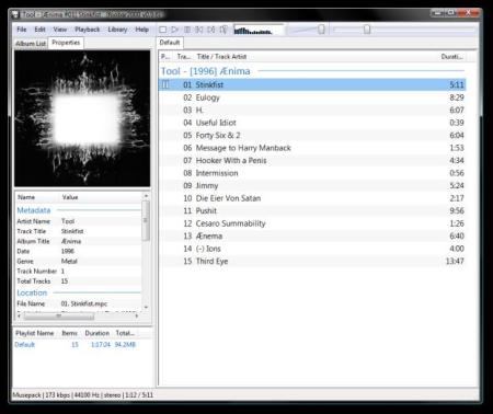Аудиоплеер разработки одного из авторов популярнейшего плеера Winamp. Основные черты foobar 2000 - качественный звук, широкие возможности настройки, спартанский интерфейс и низкие системные требования. Foobar проигрывает файлы форматов MP1, MP2, MP3, MP4, MPC, AAC, Ogg Vorbis, FLAC / Ogg FLAC, WavPack, WAV, AIFF, AU, SND, CDDA, WMA (lheubt форматы могут поддерживаться при установке соответствующих плагинов). Имеется полная поддержка unicode. В программе использован новый формат плейлистов (m3u8) и поддерживается чтение APEv2-тэгов из файлов MP3.